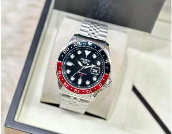 SEIKO GMT AUTOMATIC black and red silver chain belt